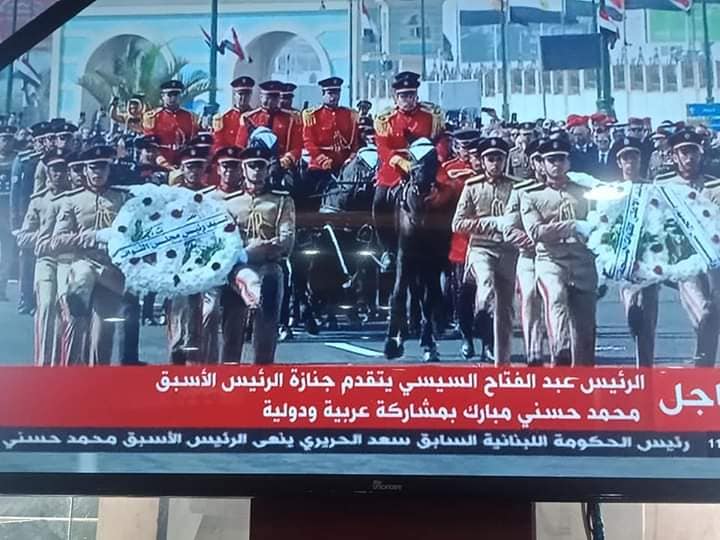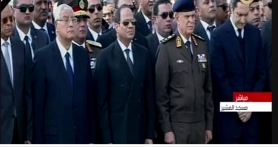 تقدم الرئيس عبد الفتاح السيسى وكبار رجال الدولة الجنازة العسكرية للرئيس الأسبق حسنى مبارك، من مسجد المشير طنطاوى. وبهاتفات "لا إله إلا الله.. حسنى مبارك حبيب الله"..