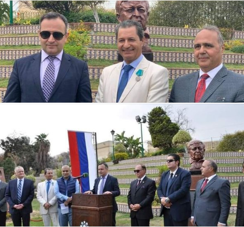 وذلك على هامش الاحتفال بإزاحة الستار عن تمثال الشاعر الروسى الكبير/ رسول حمزاتوف، بحديقة الحرية، والذي قام بنحته وتصميمه الفنان المصري أسامة السروي، وذلك في إطار الاحتفال بعام التبادل الثقافى بين روسيا ومصر، وتوطيد العلاقة بين البلدين، بحضور العديد من كبار الفنانيين التشكيليين والصحفيين ومراسلى وكالات الأنباء المحلية والعالمية.