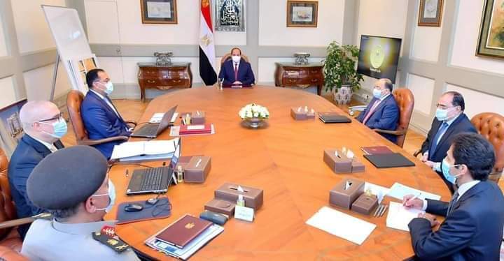 اجتمع السيد الرئيس عبد الفتاح السيسي اليوم مع الدكتور مصطفى مدبولي رئيس مجلس الوزراء، والسيد محمود شعراوي وزير التنمية المحلية، والدكتور عاصم الجزار وزير الإسكان والمرافق والمجتمعات العمرانية، واللواء أمير سيد أحمد مستشار رئيس الجمهورية للتخطيط العمراني، واللواء أركان حرب إيهاب الفار رئيس الهيئة الهندسية للقوات المسلحة.