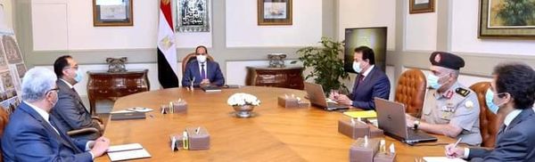 اجتمع السيد الرئيس عبد الفتاح السيسي اليوم مع الدكتور مصطفى مدبولي رئيس مجلس الوزراء، والدكتور خالد عبد الغفار وزير التعليم العالي والبحث العلمي، والدكتور محمد أيمن عاشور نائب وزير التعليم العالي والبحث العلمي لشئون الجامعات، واللواء أركان حرب إيهاب الفار رئيس الهيئة الهندسية للقوات المسلحة.