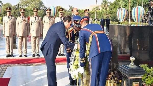 وضع الرئيس عبدالفتاح السيسي، اليوم الخميس، إكليلا من الزهور على قبر الرئيس الراحل محمد أنور السادات، بمناسبة الذكرى السادسة والأربعين لانتصارات أكتوبر.
