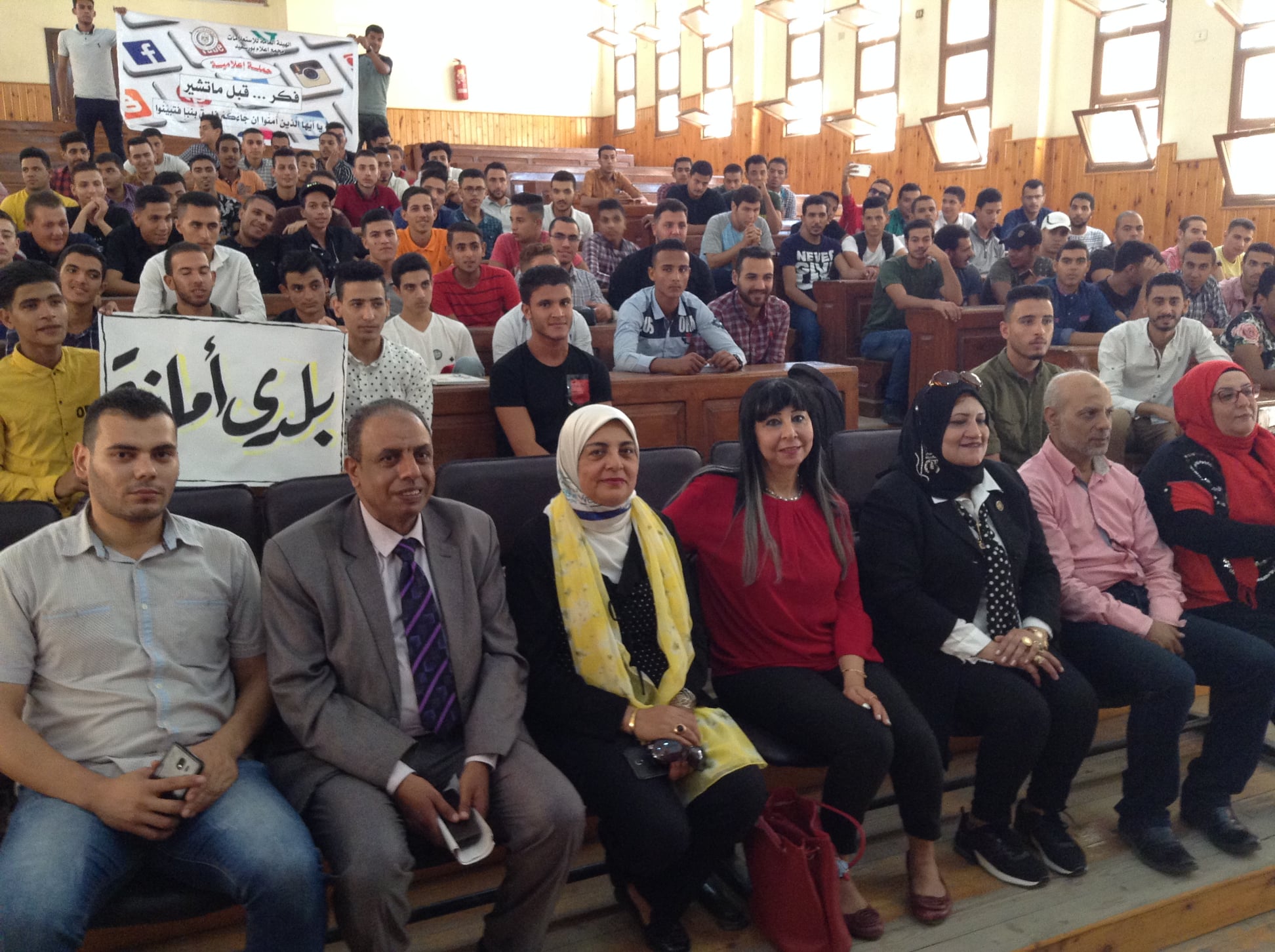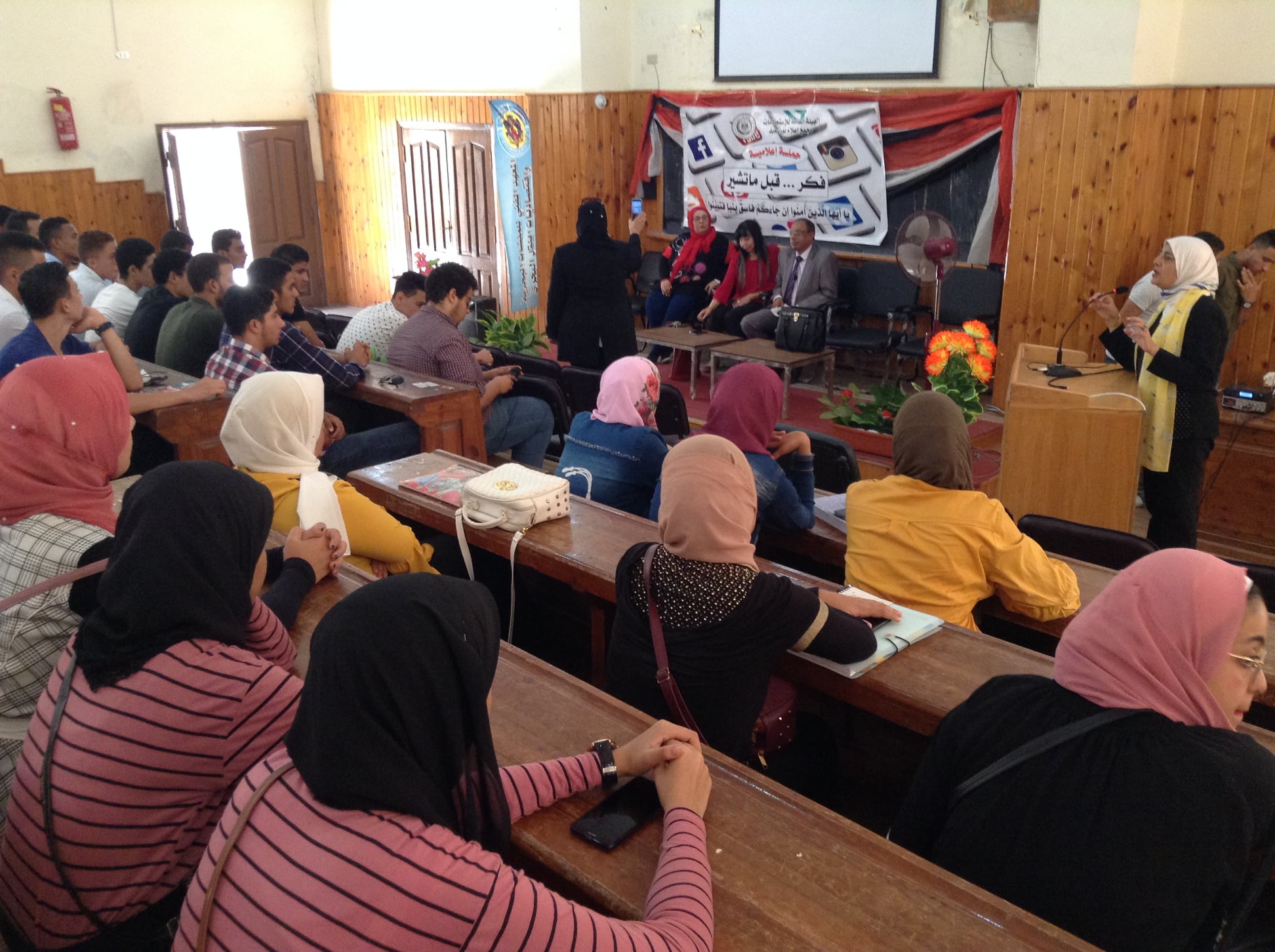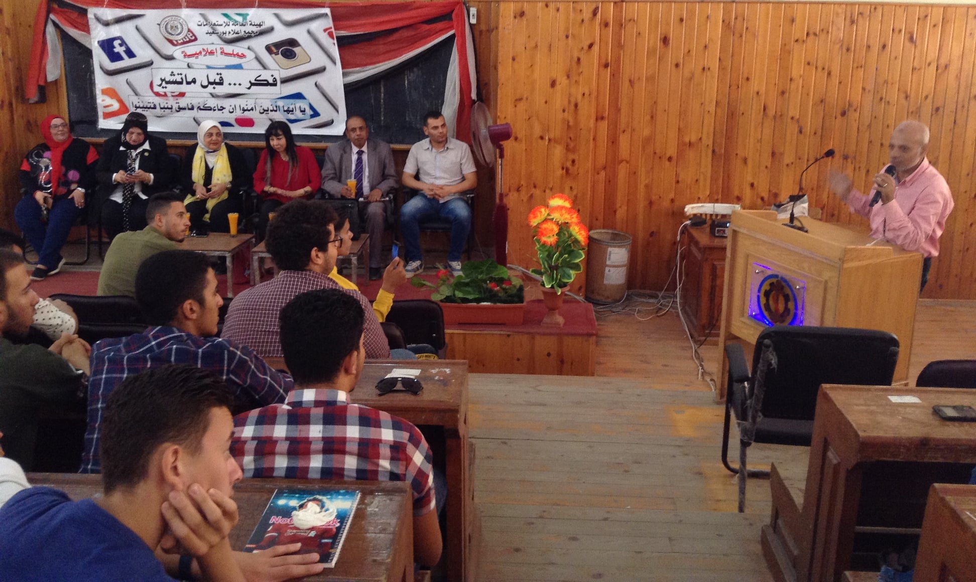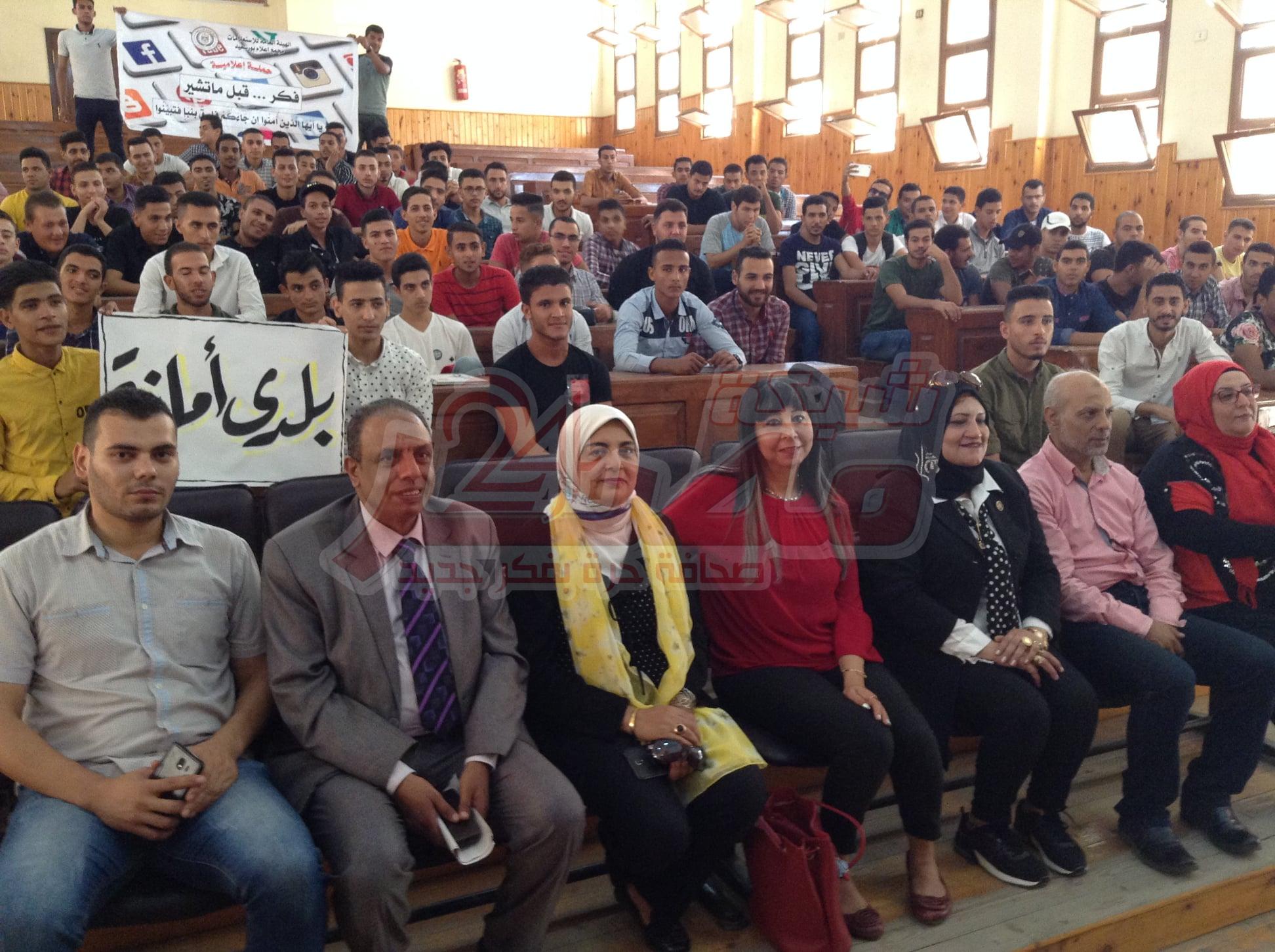 يستمر مجمع إعلام بورسعيد في تنفيذ فعاليات حملة “ فكر قبل ما تشير “ والتي تستهدف التوعية بخطورة نشر الشائعات المغرضة خاصة خلال مواقع التواصل الاجتماعي، هذا وقد تم تنفيذ ندوة بعنوان “الشائعات و تحديات الأمن القومي “ بحضور الأستاذ سيد أبو اليزيد نائب رئيس تحرير جريدة الجمهورية و الأستاذة مرفت الخولي مدير عام اعلام القناة و المهندس هيثم رحيم مدير الكلية التكنولوجية و الأستاذة نجلاء ادوار مقرر المجلس القومي للمرأة و المهندسة سوزان مجدي وكيل المعهد الفني للمنشآت البحرية لشئون التعليم و الأستاذة سماح حامد مسئول البرامج بمركز النيل للإعلام ببورسعيد و عدد كبير من شباب المعهد الفني للمنشآت البحرية .