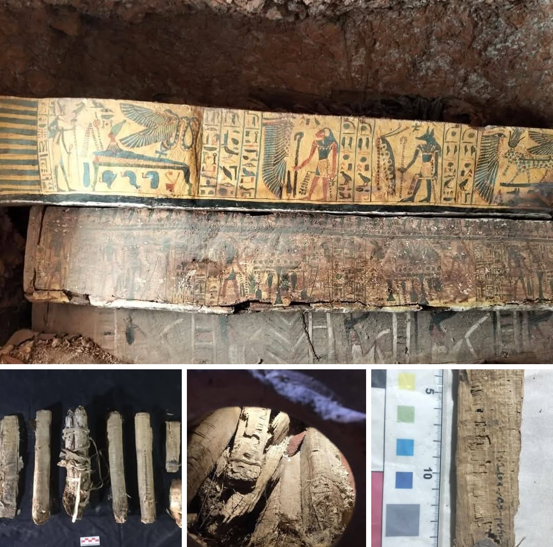 كشفت البعثة الأثرية المصرية بين المجلس الأعلى للآثار و مؤسسة زاهي حواس للآثار والتراث عن خبيئة من التوابيت الملونة بداخلها مومياوات، بالإضافة إلى مجموعة من البرديات النادرة من عصر الانتقال الثالث، وذلك أثناء أعمال الحفائر الأثرية بالزاوية الجنوبية الغربية من فناء مقبرة سنب بمنطقة القرنة بالبر الغربي بالأقصر.