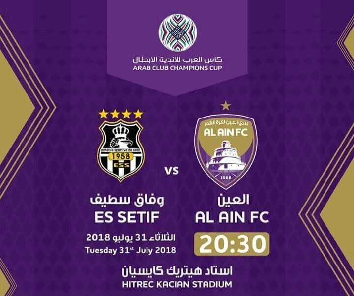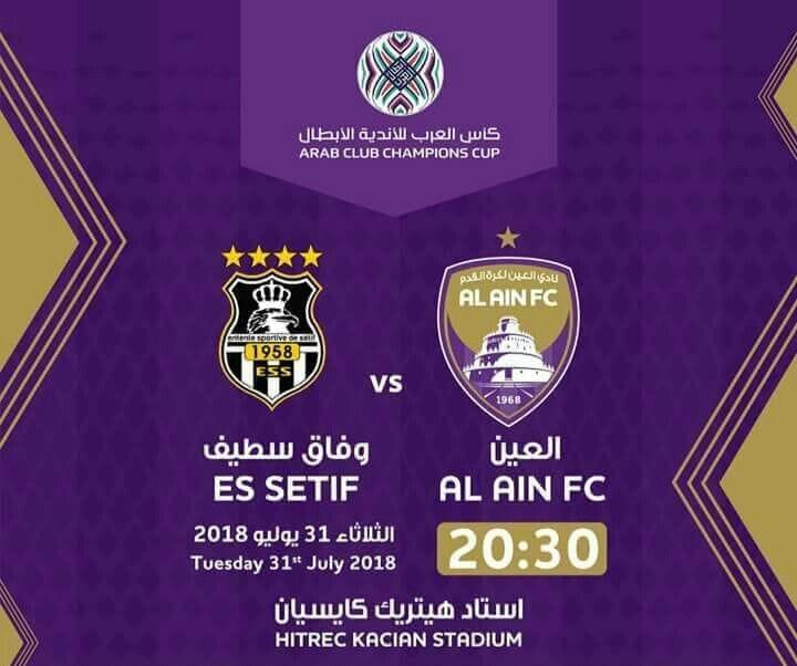 يلتقى اليوم فى تمام الساعة السادسه مساءً على ملعب هزاع بن زايد فريقى العين الإماراتى ونظيرة وفاق سطيف الجزائرى فى أولى مباريات البطوله العربيه، فى دور ال٣٢ من المسابقة. اللقاء مذاعه على قناة أبو ظبي الرياضيه
