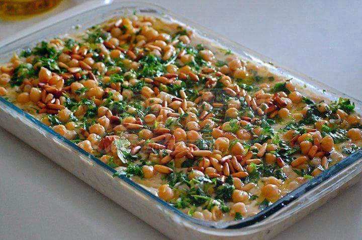 تضاف 2 - 3 ملعقة كبيرة من الحمص الحب المسلوق.