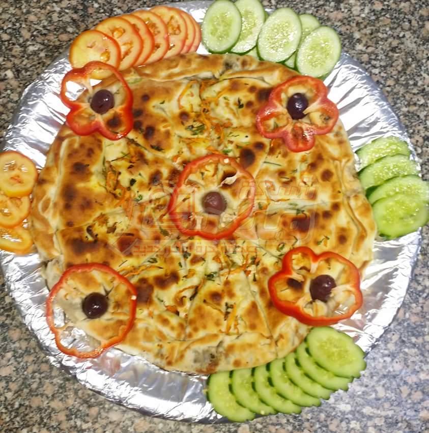 ناتى بالعجين ونفرد طبقة ثم نوضع عليها الخليط ثم نضع الجبنة الموتزاريلا ثم نضع طبقة عجين اخرى ونغلقها من الجوانب ثم نحدتها مثلثات مثل البيتزا وفى الفرن نضعها للتسوية ولا ننسى اسفل العجينة قطعة من ورق سيلفر الالمونيا وعليها نقط من الزيت ونضع العجينة ثم ندخلها الفرن .