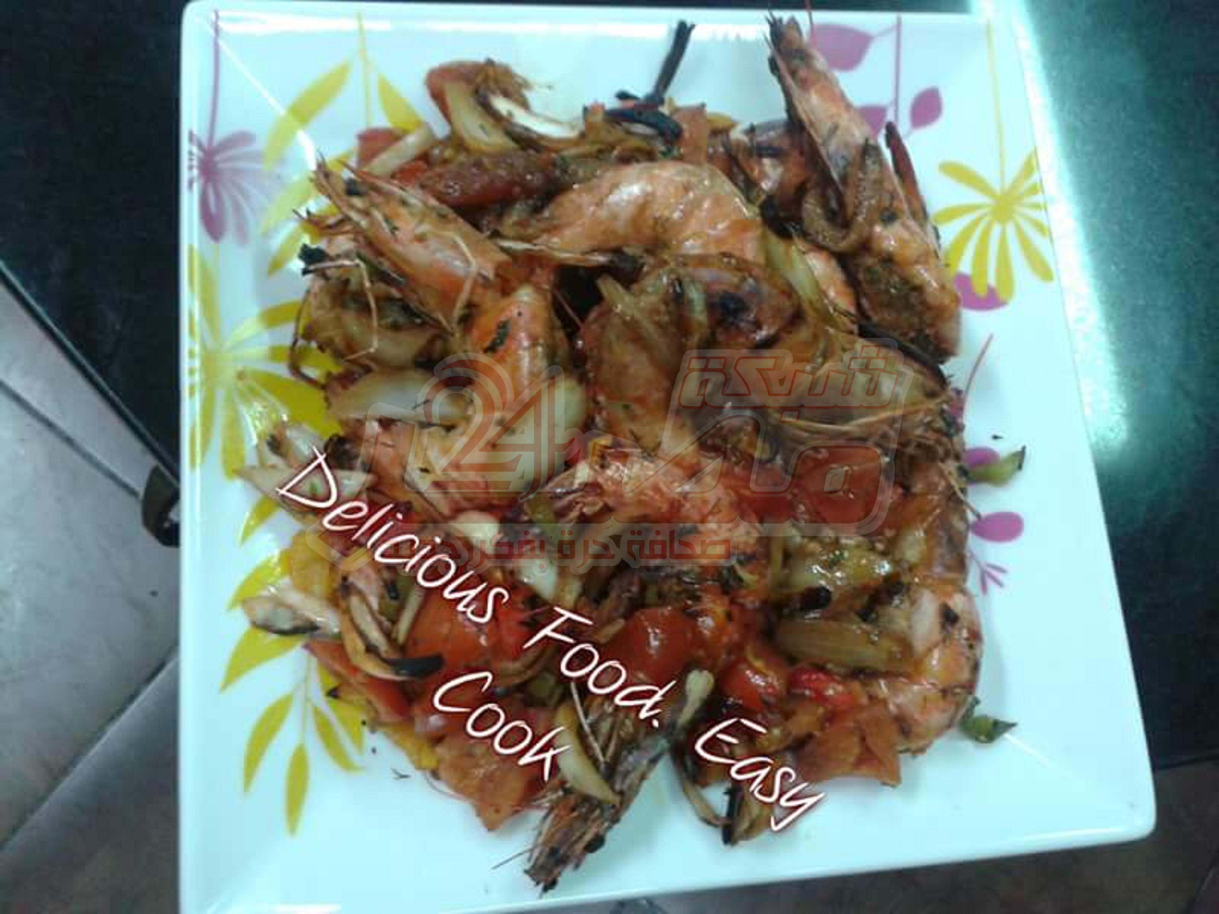 يتبل الجمبرى ويظل 2 ساعة بالتتبيلة، ثم يشوى بشبكة على الفحم بجوار شرائح الخضروات والفلفل الألوان او يشوى على الجريل ويقدم بجوار ارز وسلطات.