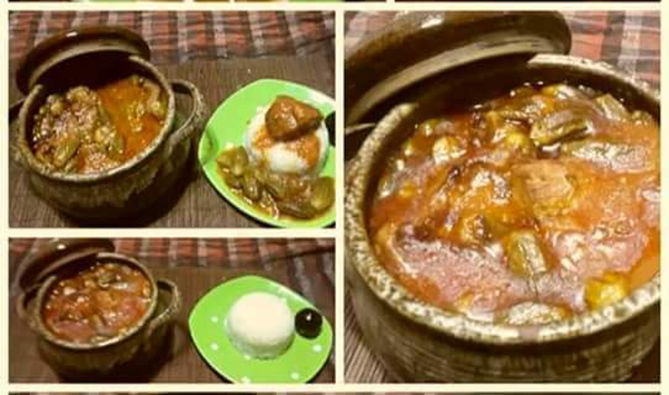 في قدر علي النار، يشوح البصل في السمن وننزل عليه بقطع اللحم، ونقلب نضيف الطماطم ومعلقة كبيرة معجون طماطم، ونقلب نضيف الملح والفلفل والثوم المفروم والفلفل الحار سليم، والليمون الاسود ونتركهم علي النار، بعد الغليان لمدة 10 دقائق نضيف البامية، ونستمر في التقليب، كوب كبير من الماء يغلي معهم، ثم نفرغ كل المكونات في طاجن، ويدخل الفرن متوسط الحرارة، لمدة 20 دقيقة او حتي تمام سواء اللحم.
