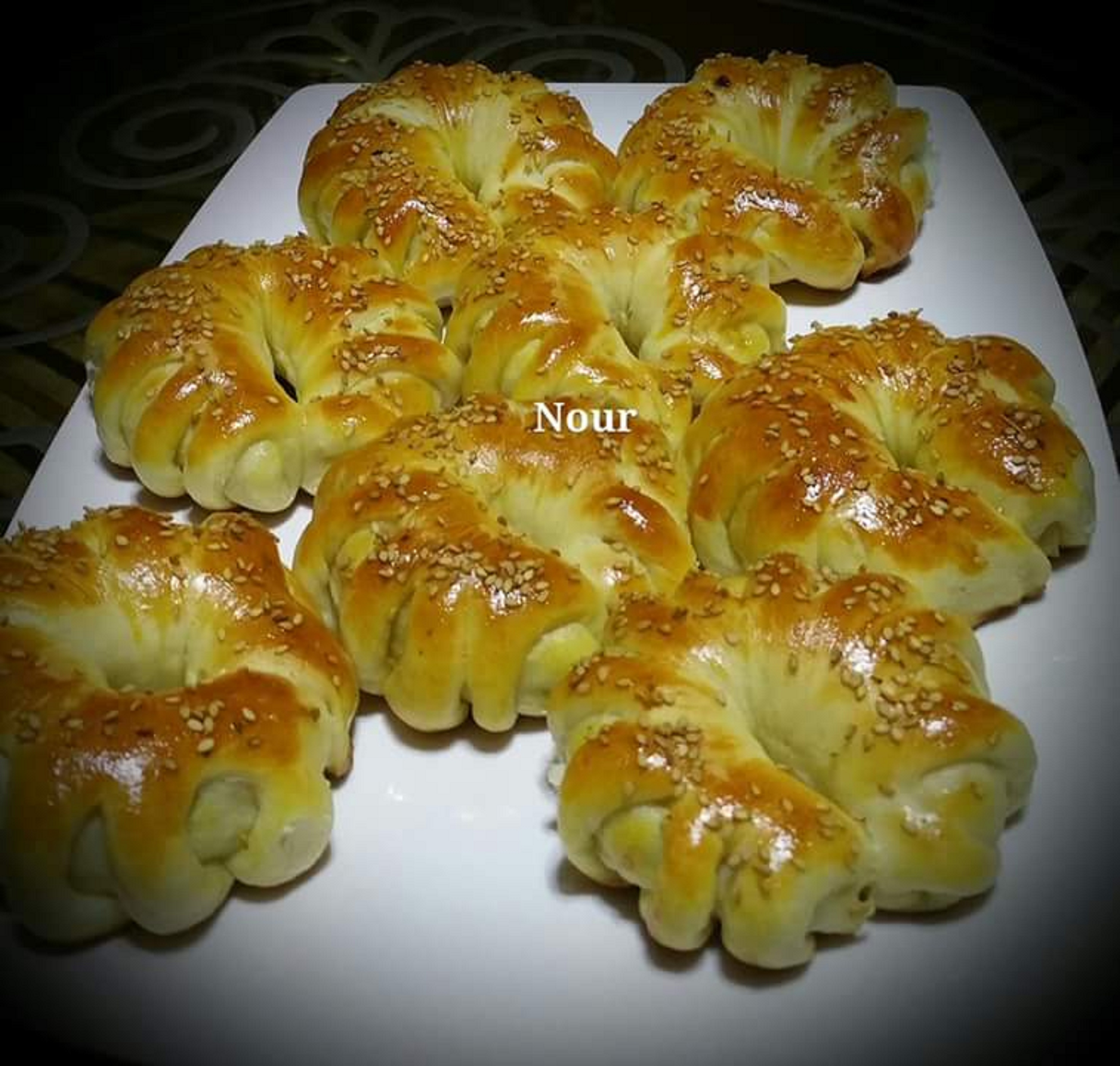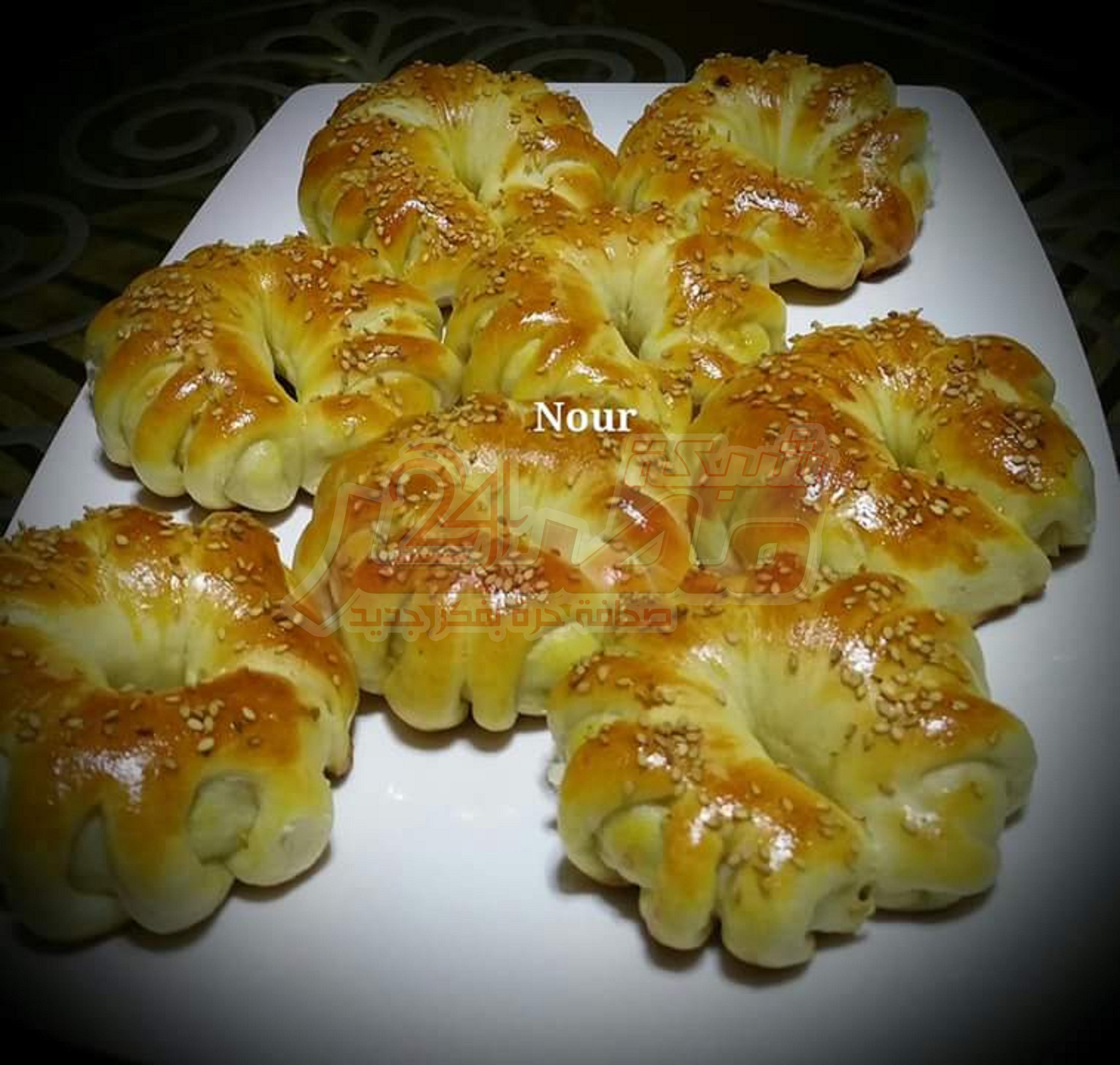 تقطع العجينة إلى كور متوسطة، إلى أن ننتهي من الكمية كلها، نعود ونأخذ اول كورة ونضع بعض من الدقيق على السطح الرخامي ونفردها بالنشابة بشكل بيضاوى، وتشكل وتوضع فى صينية مدهونة زيت وتدهن بالبيض ثم ترش بالسمسم وتدخل فرن متوسط الحرارة لمدة 20 دقيقة وبالف هنا وشفا.