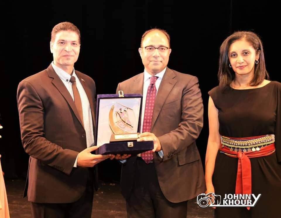وفي انتهاء الحفل قدمت الفرقة القومية بقيادة د.محمود صبرى درع البيت الفني للفنون الشعبية والاستعراضية لسيادة السفير احمد ابو زيد .