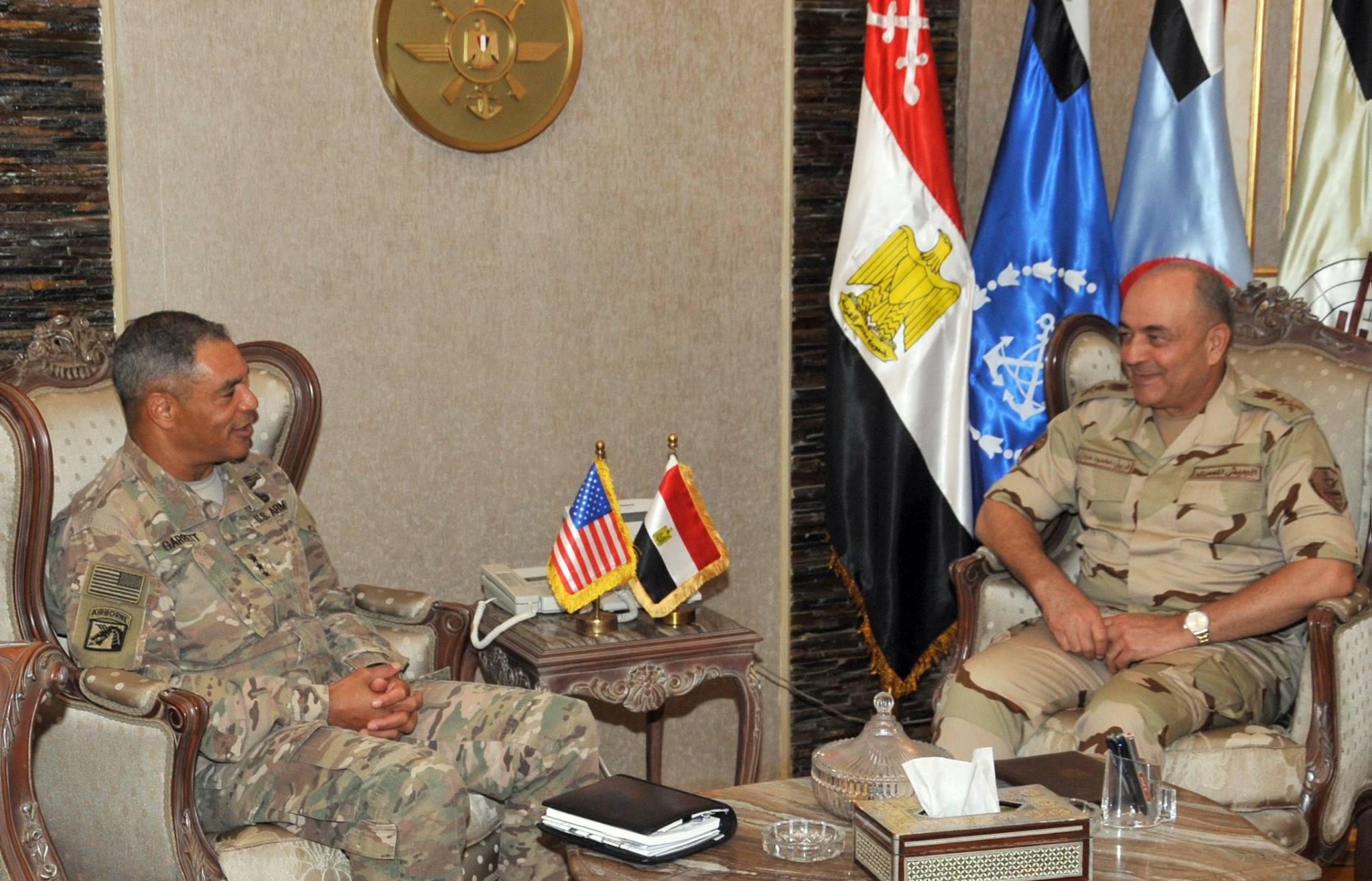 إلتقى الفريق / محمود حجازى رئيس أركان حرب القوات المسلحة بالفريق / مايكل جاريت قائد القوات البرية للقيادة المركزية الأمريكية والوفد المرافق له الذى يزور مصر حالياً .