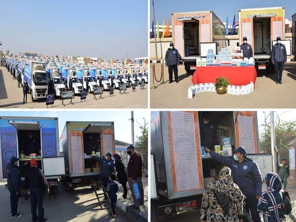 تنفيذاً لتوجيهات السيد الرئيس / عبد الفتاح السيسى رئيس الجمهورية القائد الأعلى للقوات المسلحة لتقديم الدعم اللازم للمواطنين لمجابهة إنتشار الموجة الثانية لفيروس كورونا أصدرت القيادة العامة للقوات المسلحة أوامرها لجهاز مشروعات الخدمة الوطنية للقوات المسلحة لتوفير كميات كبيرة من المواد المطهرة والسلع الغذائية المجمدة والجافة وتوزيعها بأسعار مخفضة بعدد من المناطق التى تشهد كثافة سكانية عالية بمختلف محافظات الجمهورية عبر منافذها المتحركة وذلك للحد من تكدس المواطنين وتوفير المناخ الصحى الآمن لمجابهة إنتشار فيروس كورونا ، وحرصت القوات المسلحة على الإعداد والتجهيز الجيد للسلع الغذائية والمواد المطهرة ، ونقلها بالسيارات المجهزة لضمان الحفاظ على أعلى معايير الجودة خلال وصولها للمواطنين مع إتخاذ أقصى الإجراءات الوقائية والإحترازية خلال عملية التوزيع .