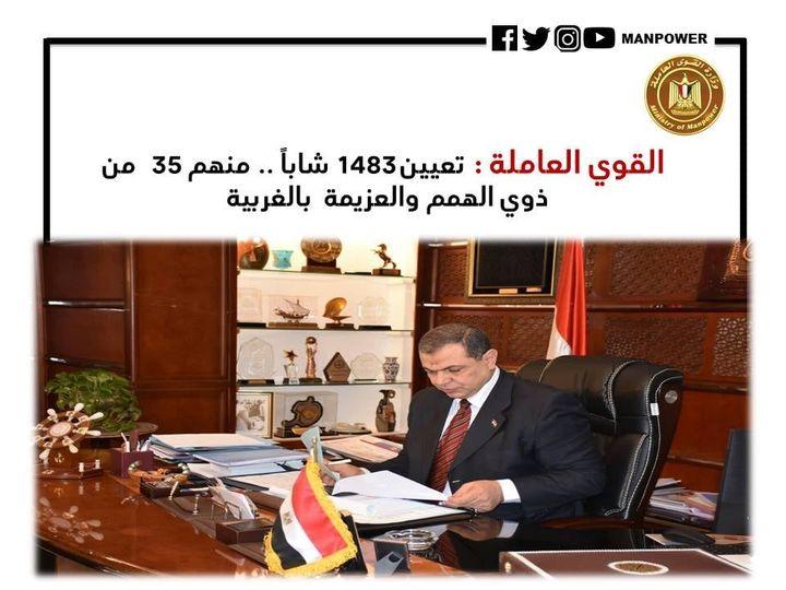 أعلن محمد سعفان، وزير القوى العاملة، قيام مديرية القوي العاملة بمحافظة الغربية بتعيين 1483 شاباً، في منشآت القطاع الخاص والاستثماري، منهم 35 من ذوي الهمم والعزيمة، من خلال شهادة القيد المرتدة "كعب العمل"، من المسجلين بمكاتب التشغيل، والذين بلغوا 5055 شاباً ، كما تم توفير 1516 فرصة عمل .