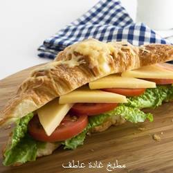 بعد نضج الكروسون أفتحيه بسكين من المنتصف وأحشي الكروسون بشرائح من جبنة تشيدر والطماطم والخس. وبالهنا والشفا