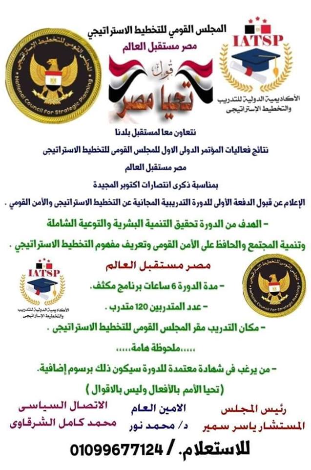 وافق المجلس القومى للتخطيط الاستراتيحى على اقامة دورة تدريبية بمناسبة اعياد اكتوبر.