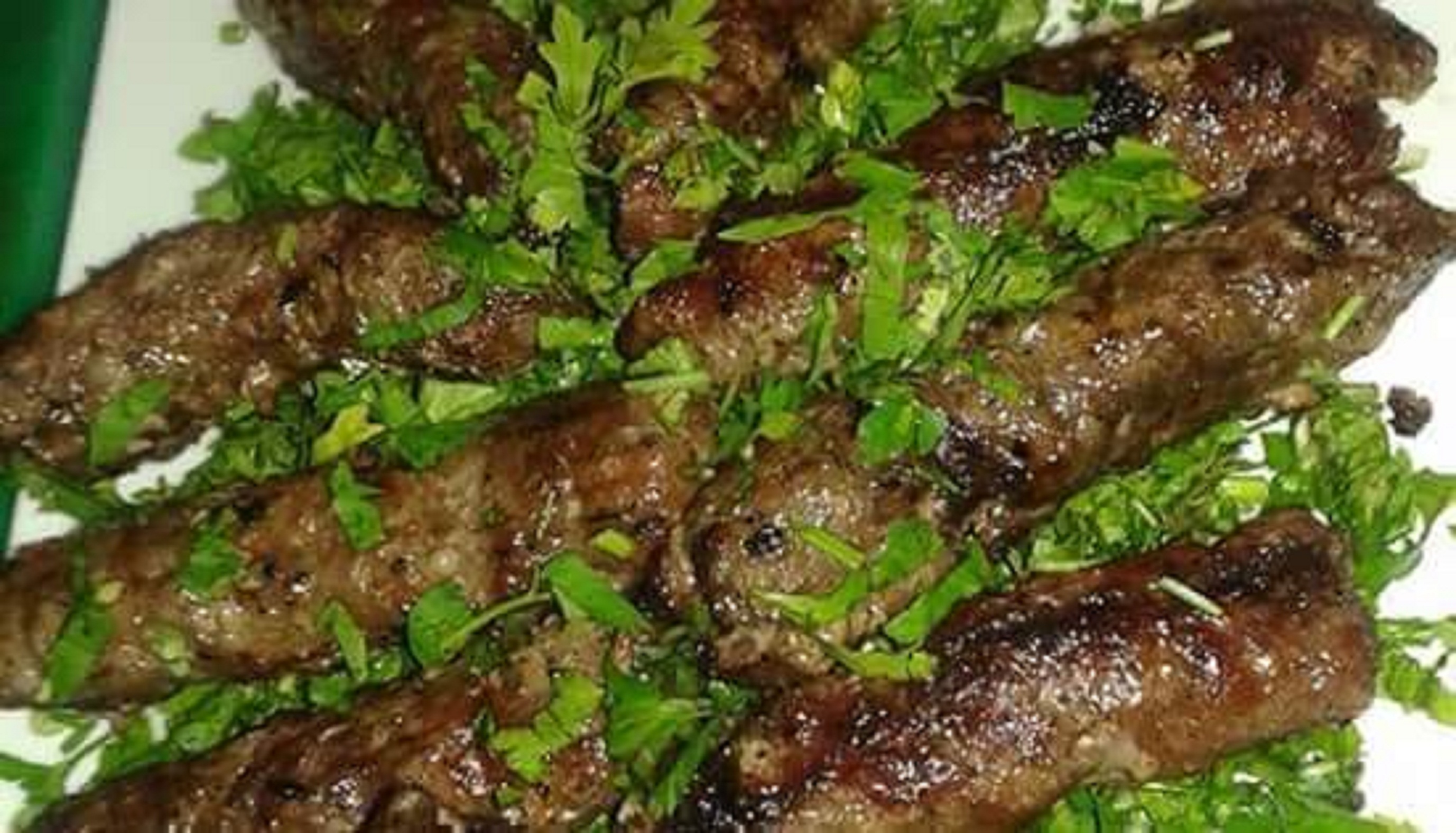 كيلو لحمة ملبس يفضل انه يكون فيه نسبة من الدهن20% ، 2 بصلة متوسطة الحجم، 2 فص توم، ربع حزمة بقدونس خضرة، ربع كزبرة خضرة، ملعقة كبيرة بيكنج بودر.