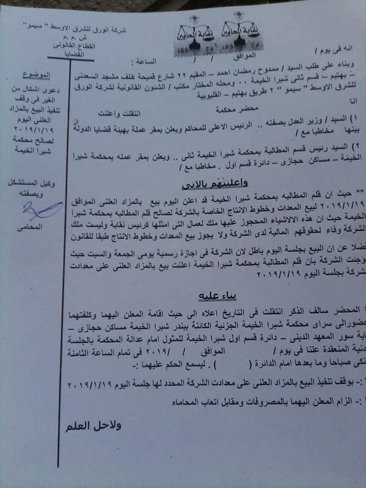 وعلى غرار استكمال ازمة شركة سيمو للورق
