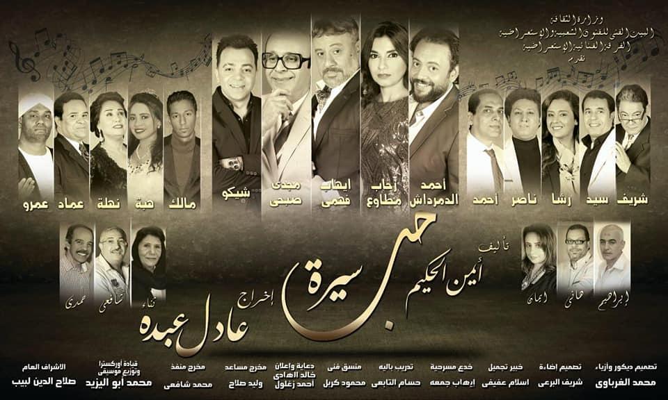 سيرة حب من إنتاج الفرقة الغنائية الاستعراضية بقيادة الفنان صلاح لبيب تصميم ديكور وأزياء محمد الغرباوى تصميم إضاءة شريف البرعى خبير تجميل إسلام عفيفي منسق عام أنشطة البرامج الفنية والعروض إيهاب فاروق ، تصوير ومونتاج عبدالرحمن فيكتور .جرافيك خالد الهادي ، احمد زغلول ويساعد في الإخراج ، إيمان مصطفي ، محمد عباده ، سعاد الجوكر ، محمود سمير ، عامر علم الدين ، ، فريق عمل شاشة العرض ، احمد مصطفي ، محمد ناصر ،شريف عباس خدع مسرحية إيهاب جمعة تدريب بالية حسام التابعي منسق فني محمود كربل مخرج منفذ محمد الشافعي تأليف الكاتب الكبير أيمن الحكيم تصميم الاستعراضات والإخراج د عادل عبده .