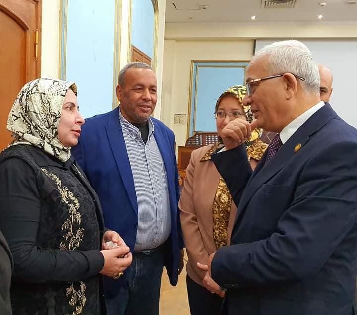 اليوم برعاية وحضور معالى نائب الوزير لشئون المعلمين الاستاذ الدكتور رضا حجازى و حضور مستشار الوزير للاحتياجات الخاصةالاستاذه انجى مشهور ووكيل الوزارة للتربية الخاصة د. هالة عبد السلام ومدير عام الادارة العامة للتربية الخاصة الأستاذ اسامة سويد و مدير عام تنمية التربية الخاصة الدكتور عبد الستار شعبان اقيم اليوم بديوان الوزارة اجتماع الادارة المركزية لشئون التربية الخاصة بمديرى ادارات التربية الخاصة ومسؤلى الدمج من جميع المحافظات لمناقشة الاستعدادات لبدء اجراءات الدمج للصف الثالث الثانوى العام والفنى وفي نفس السياق تم توزيع نسخ اضافية من القاموس الاشارى الموحد للصم ونسخ من دليل التوعية بالدمج بالتعليمى واجراءاته كما قام معالى ا.د رضا حجازى بتكريم العضو الفنى بالادارة الاستاذ محمد كرم لانجازته الرياضية المميزة