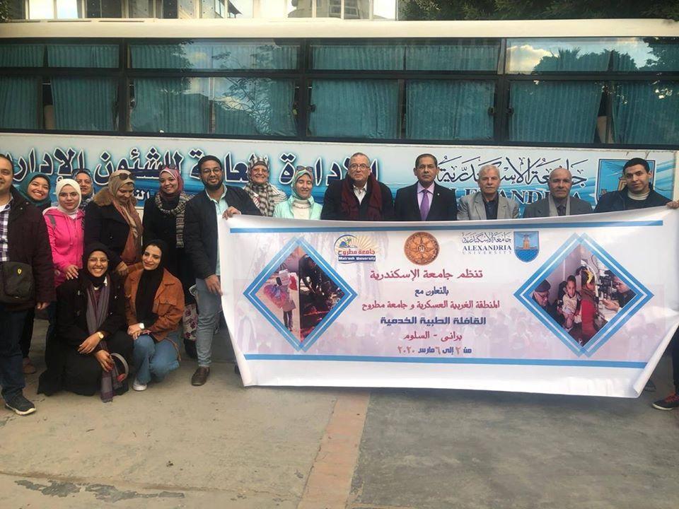 تحت رعاية الدكتور عصام الكردي، رئيس جامعه الإسكندرية، والدكتور مصطفى النجار رئيس جامعة مطروح وبالتعاون مع المنطقة الغربية العسكرية ومحافظه مطروح، انطلقت أمس الإثنين الموافق ٢ مارس ٢٠٢٠، القافلة الطبية الخدمية المجتمعية الشاملة التى ينظمها قطاع خدمة المجتمع وتنمية البيئة بجامعة الإسكندرية برئاسة الدكتور علاء رمضان نائب رئيس الجامعة لشئون خدمة المجتمع وتنمية البيئة، إلى منطقة برانى- السلوم، وتستمر حتى يوم ٦ مارس المقبل.