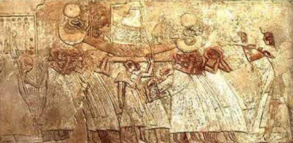 كما تقف كاهنات "موت" ومعهن الآلآت الموسيقية، كما تقف الشرطه لتنظيم الإحتفال، وعند النيل تنزل المراكب تتبعها مراكب القرابين، وعلي الشاطئ يقف الناس ويهللون ويهتفون ويساعدون في دفع المراكب في سعاده، وبرقصون ويرتلون الأناشيد ويعزفون بالصلاصل، ويبدأ عيد الإحتفال بالسنه الجديدة قبلها بليله، حيث يتوجه مجموعه من كبار الكهنه، وهم أربعه كهنه أساسيون في المعبد والكاهن المرتبط ب "دندره" والذي يطلق عليه عازف الموسيقي،