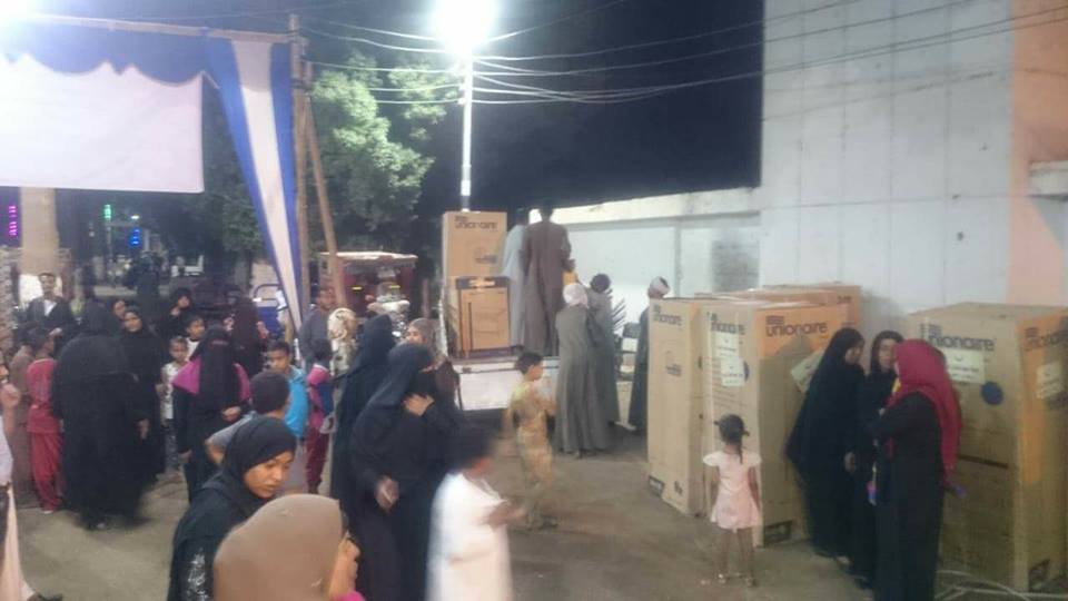 بدأت الاحتفالية بمائدة افطار جماعى للفقراء بالمركزين ضمت اكثر من 400 مواطن ثم تم توزيع الاجهزة على الفتيات اليتيمات وايضا قامت الجمعية بذبح ماشية " عجل" وزن 250 كيلو وتم توزيعه على الفقراء ، ايضا قامت الجمعية بتوزيع 350 طقم ملابس للاطفال الايتام بالمنطقة