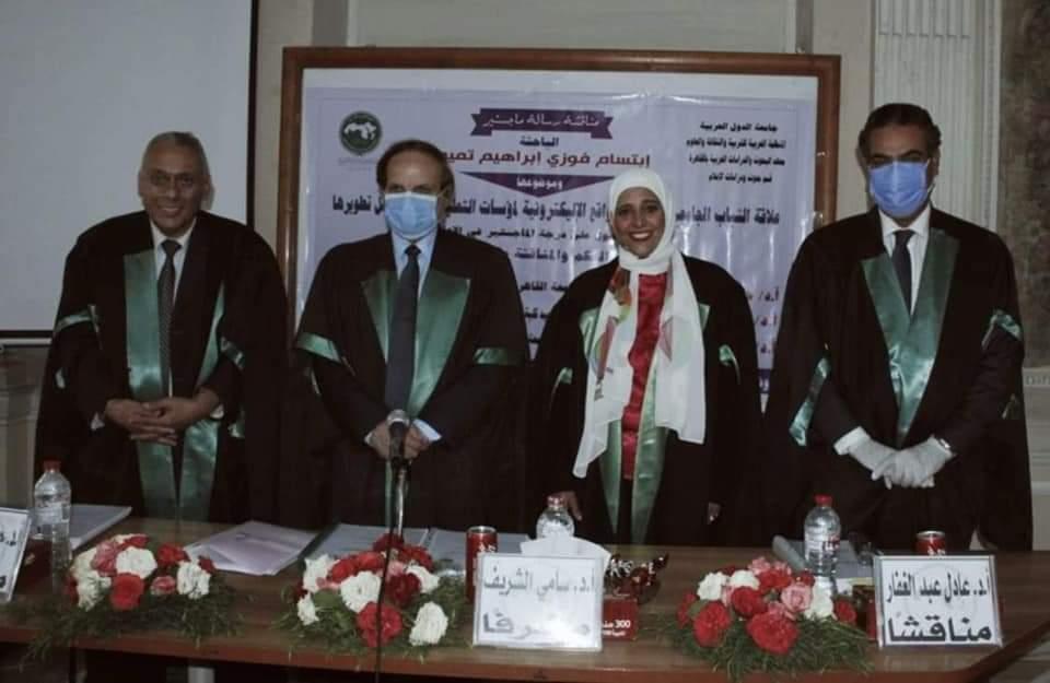 وتكونت لجنة المناقشة والحكم على الرسالة من كل من أ.د/ حسن عماد - أستاذ الإعلام بجامعة القاهرة وعميد كلية الاعلام الأسبق "رئيسا ومناقشًا"، وأ.د/ سامي الشريف - أستاذ الإعلام بجامعة القاهرة وعميد كلية الإعلام بالجامعة الحديثة للتكنولوجيا والمعلومات"مشرفًا"، وأ.د/ عادل عبد الغفار- أستاذ الإعلام والرأي العام بجامعة القاهرة وعميد كلية إعلام جامعة النهضة "مناقشًا".