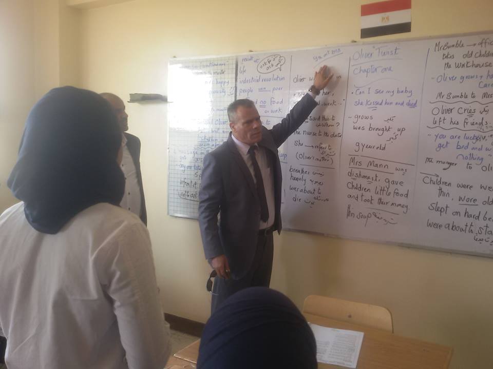 والجدير بالذكر من الطريف أن تصادف أن معظم متابعته اليوم لفصول المدرستين الإعدادية والثانوية مادة اللغة الإنجليزية فقال بابتسامته المعهودة ( حاسس إن الإنجليز بيطاردني في اللاهون ربنا يستر ) فعم الضحك بيننا .