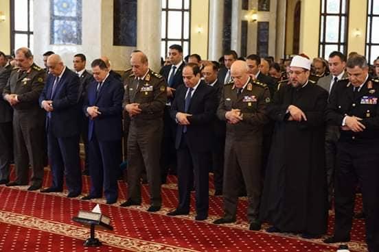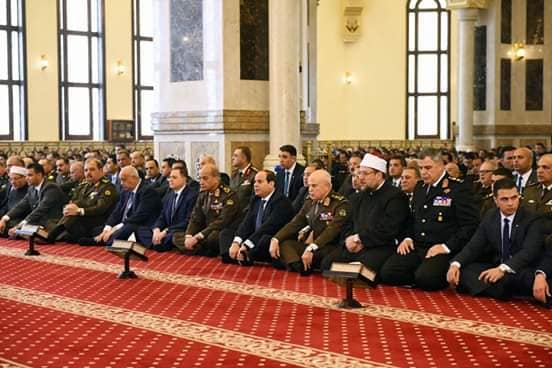 كما أدي الصلاة في المسجد، الفريق أول محمد زكي، وزير الدفاع والإنتاج الحربى وكبار رجال الدولة وعدد من الوزراء وقادة الأفرع.