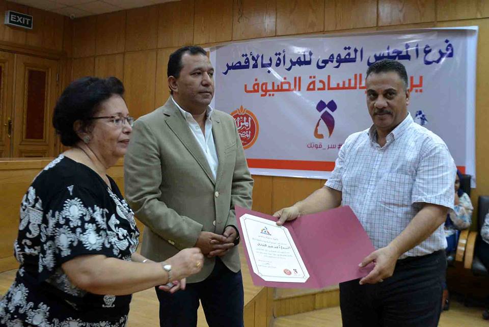 شارك محمد بدر محافظ الأقصر بالأحتفالية التى ينظمها فرع المجلس القومى للمرأة بالمحافظة لتكريم الرائدات الريفيات وتسليم شهادات الأمان بحضور الدكتورة سعاد أسرائيل مقررة فرع المجلس القومى للمرأة بمحافظة الأقصر ، و الشيخ محمد صالح وكيل وزارة الأوقاف ، وأحمد عبيد وكيل وزارة التضامن الأجتماعى ، والدكتور السيد احمد عبد الجواد وكيل وزارة الصحة ، وعبد الجابر على مدير عام البنك الزراعى المصرى ، والدكتورة سلوى صالح مدير عام تنظيم الأسرة بمحافظة الأقصر ، وعدد من القيادات التنفيذية بالمحافظة .