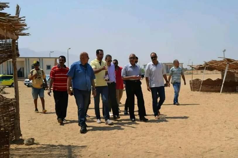رافق المحافظ في تفقد الشاطئ العام كلا من اللواء طارق عبد العظيم السكرتير العام والعميد محمد اسماعيل مدير عام مشروع الشواطئ والشاليهات والنادي الاجتماعي وسوسن محمد سكرتير حي عتاقة ومحمد درويش مدير الشواطئ ومنير كامل مدير عام المتابعة .