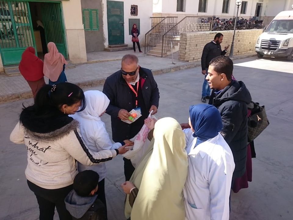 بالصور. قافلة جامعة المنصورة تبدأ أعمالها بالكشف الطبي مجانا بالوادى الجديد