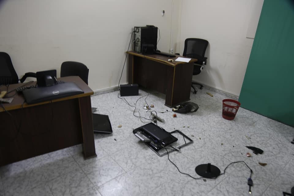 وأضافت أن المسلحين دمروا كافة الكاميرات الخاصة بالتلفزيون وأجهزة الحاسوب وعبثوا بأرشيف أشرطة التسجيل والبث ودمروها بشكل تام، إضافة إلى تخريب صور الرئيس الفلسطيني محمود عباس المعلقة على الجدران داخل مبنى الهيئة.