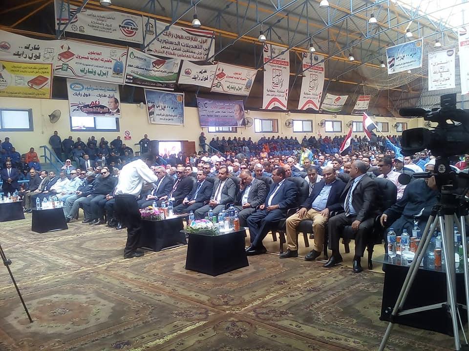 نظمت النقابة العامة للبترول برئاسة محمد جبران رئيس النقابة العامة للعاملين بالبترول ونائب رئيس الاتحاد العام لنقابات عمال مصر مؤتمر عمالي للعاملين بقطاع البترول لدعم التعديلات الدستورية، بالصالة المغطاة بالشركة العامة للبترول برأس غارب.