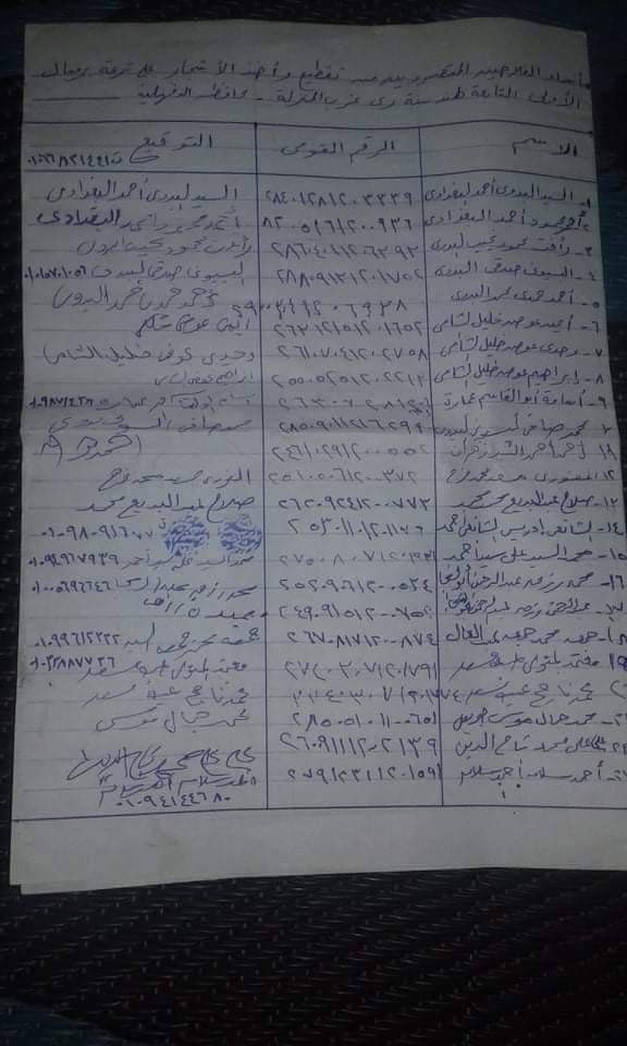 وبعد هذا اللقاء وبالتأكد من المستندات التي وردت إلينا ومقارنتها بالمستند الذي نشر بتوقيعات الفلاحين المتضررين تأكدنا من أن من حرر ضدهم محاضر متعلقة بالمخالفات هم نفسهم الاسماء التي وردت أسماؤهم في كشف المتضررين والذي يؤكد أن كل مايقال ماهو إلا وسيلة ضغط فحسب من أجل التصالح في تلك المحاضر.