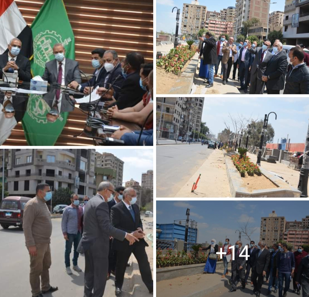 بعد الإنتهاء من الإجتماع قام السيد المحافظ بإجراء جولة ميدانية للمشروع علي الطبيعة وتم التوافق علي بعض الاعمال لدفع عجله العمل بمستوى عالى من الدقة ، حيث تم تفقد أعمال التشجير والإنارة وتركيب الإنترلوك والرخام بالأسوار والأرضيات بطول الكورنيش كما تم مراجعة أعمال الإنارة التي تم تركيبها.