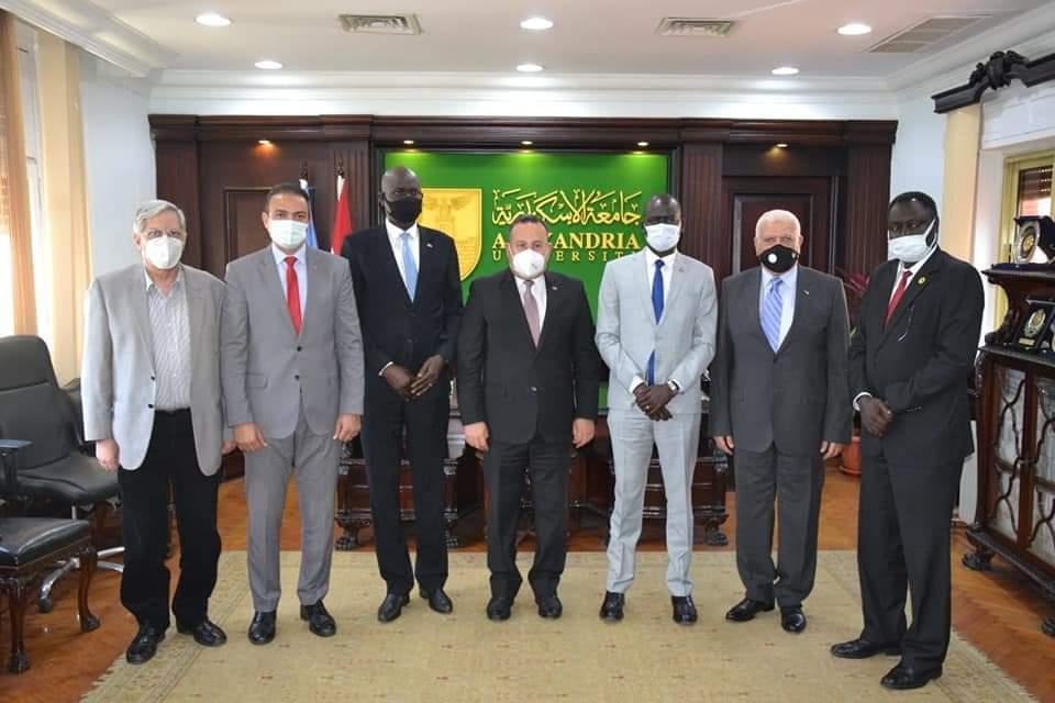 وأعلن رئيس الجامعة عن اعتزامه مع لجنة هندسية زيارة الأرض المخصصة لفرع الجامعة بجنوب السودان خلال الفترة القادمة لدراسة مراحل التنفيذ، والاتفاق على الخطوات والإجراءات اللازمة خلال الفترة القادمة وصولاً إلى افتتاح فرع جامعة الإسكندرية في تونج العام الأكاديمي بعد القادم، موضحاً أنه سيتم البدء بأربع كليات هى الزراعة والطب البيطري والتربية والتمريض، ولفت أن الدراسة ستكون على أحدث الطرق العلمية وتعتمد على البرامج بالساعات المعتمدة، ويتم من خلال الفرع دعم وتشجيع ريادة الأعمال والعمل علي تمكين الشباب من استخدام تكنولوجيا المعلومات فى إنتاج المعرفة وتطبيقاتها وتسويقها على هيئة منتجات وابتكارات تقنية وتكنولوجية، كما أكد حرص الجامعة على التعاون على الصعيد العلمى والأكاديمي مع جامعات جنوب السودان بما يحقق خدمة الأهداف التنموية المشتركة ومصلحة الشعبين على كافة المستويات.
