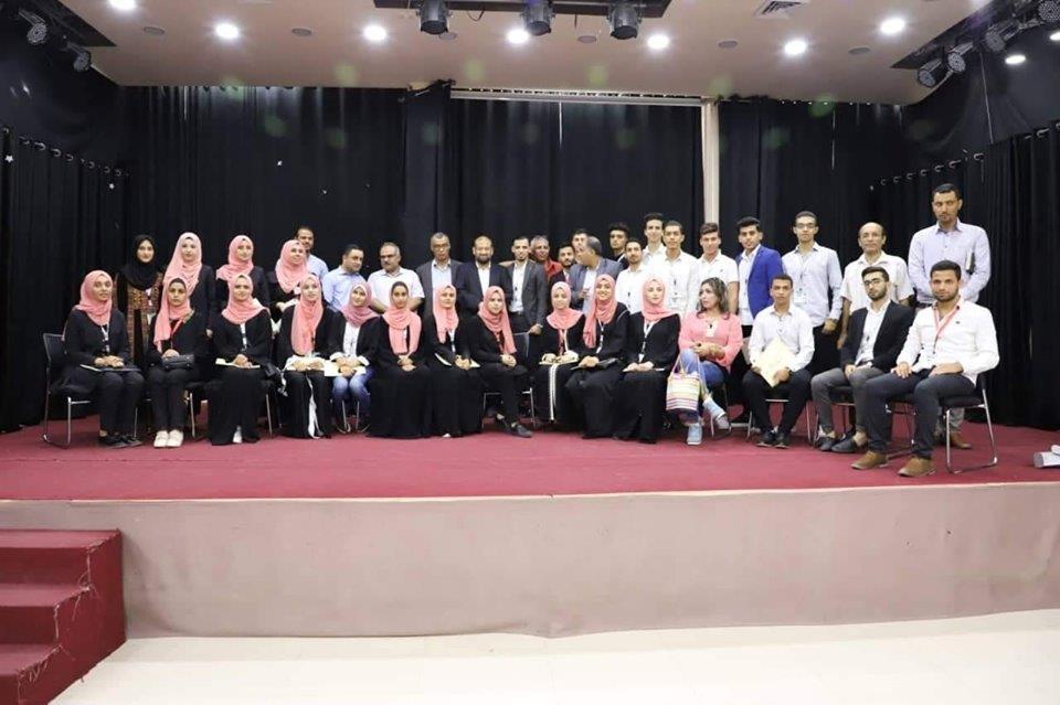 حيث افتتح الحفل بالترحيب بالحضور والوقوف دقيقة حداد على أرواح الشهداء ومن ثم عزف السلام الوطني الفلسطيني .