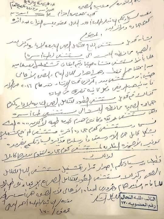 بشأن تحويل مستشفى النجاح للتكامل الصحى التابعة لإدارة مركز بدر إلى مستشفى طب الأسرة علمآ بأنها منشأة حديثآ وتم إيقاف تشغيلها بعد عامين فقط من افتتاحها.