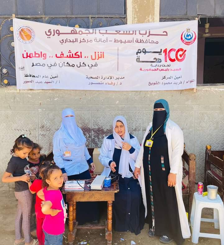 في إطار التعاون المشترك بين مديرية الشئون الصحية بأسيوط وحزب الشعب الجمهوري بقيادة السيد عبد الصبور امين عام الحزب بمحافظة أسيوط، وبناء على توجيهات الدكتور محمد زين الدين حافظ وكيل وزارة الصحة بأسيوط ، وتعليمات الدكتور أحمد سيد موسي وكيل المديرية الشئون الوقائية، نظمت ادارة البداري الصحية ، بالتعاون مع قيادات حزب الشعب الجمهوري بمركز ومدينة البداري بمحافظة أسيوط، خطه عمل مشتركه خاصة بتحركات فرق مبادرة 100يوم صحة لخدمة المواطنين بقري مركز ومدينة البداري.
