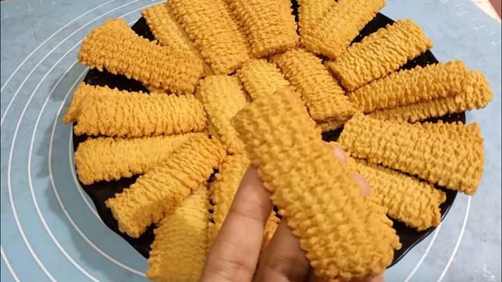 نستخدم ماكينة البسكويت او كيس الحلاونى به قمع البسكويت لتشكيل العجينة ثم نرصه فى صاج ويدخل فرن مسخن مسبقا حتى يحصل على اللون الذهبى.ويقدم وبالهنا والشفا
