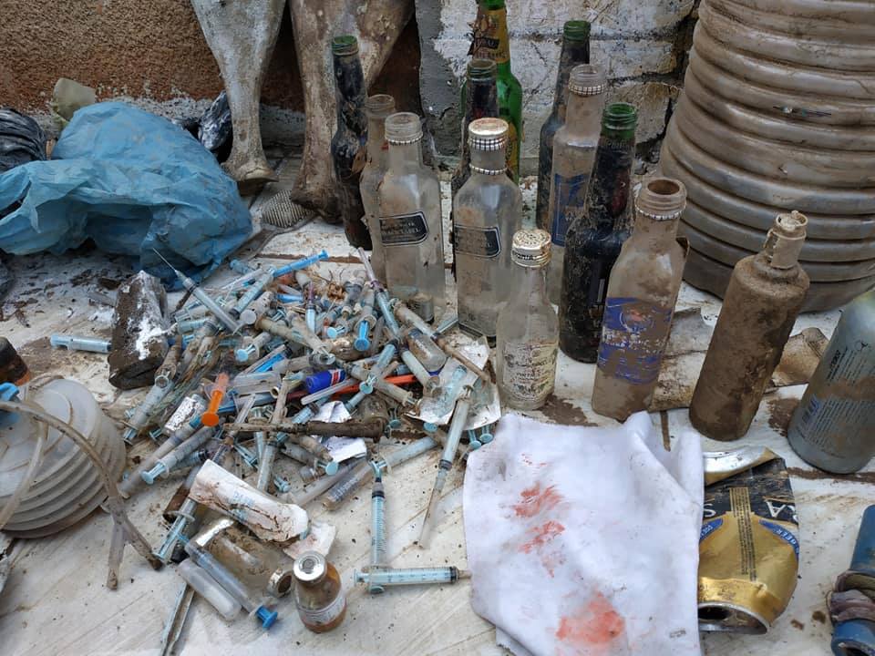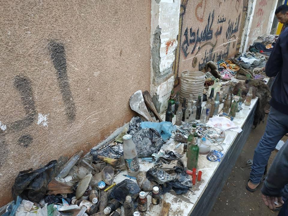 طلق خرطوش , كمية كبيره من الملابس المستعمله والمستخدمة لمن يستخدمون اسطح المقابر للفسق والفجور وتجارة المخدرات