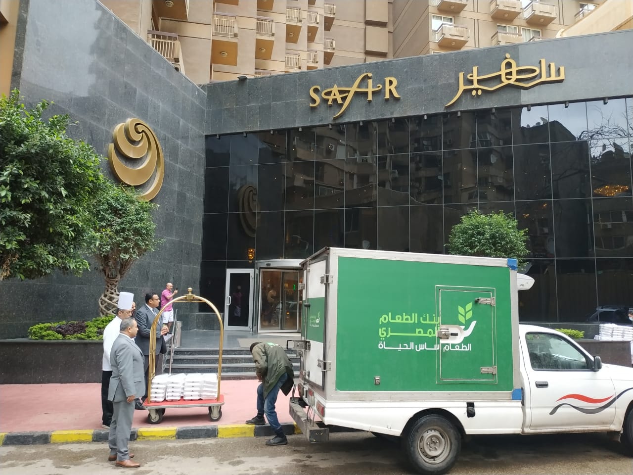وكان ذلك بالتعاون مع فندق سفير الدقي الذي أبدا إستعداده بتقديم مئة وجبة ساخنة للتوزيع على متضرري السيول قام بإعدادها على وجه السرعة خصيصا لهذا الغرض، وذلك بعد أن تواصل بنك الطعام مع عدد من الفنادق لتوفير وجبات للتوزيع في مبادرة جديدة له لنشر وتعميم ثقافة الإغاثة في المجتمع.