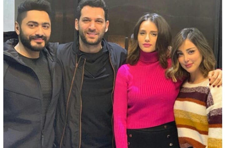 استقبل الفنان تامر حسني وزوجته بسمة بوسيل صديقهما الممثل التركي مراد يلدريم الذي اشتهر باسم"أمير" وزوجته المغربية إيمان الباني.