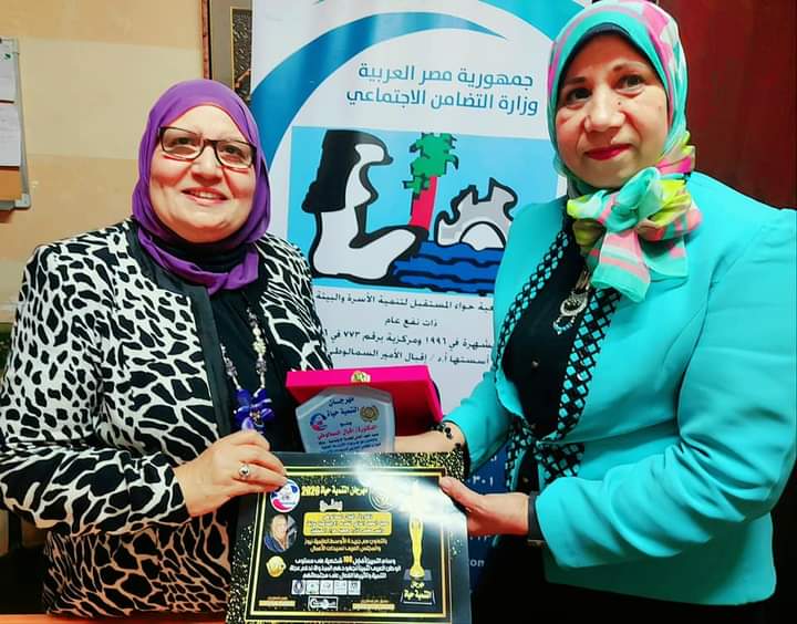 كرمت هناء نجيب رئيس مهرجان التنمية حياة والمدير العام لجريدة الاوسط العالمية نيوز، الدكتورة اقبال السمالوطي