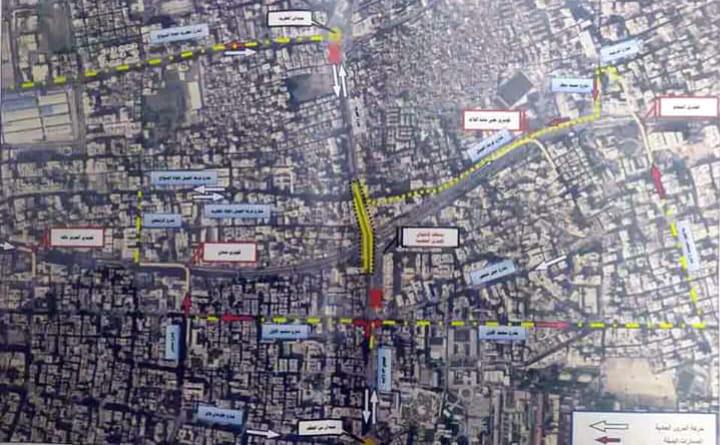 أولاً : القادم من مناطق كوبرى التجنيد وميدان إبن الحكم تجاه ميدان المطرية يسلك المحاور الآتية :