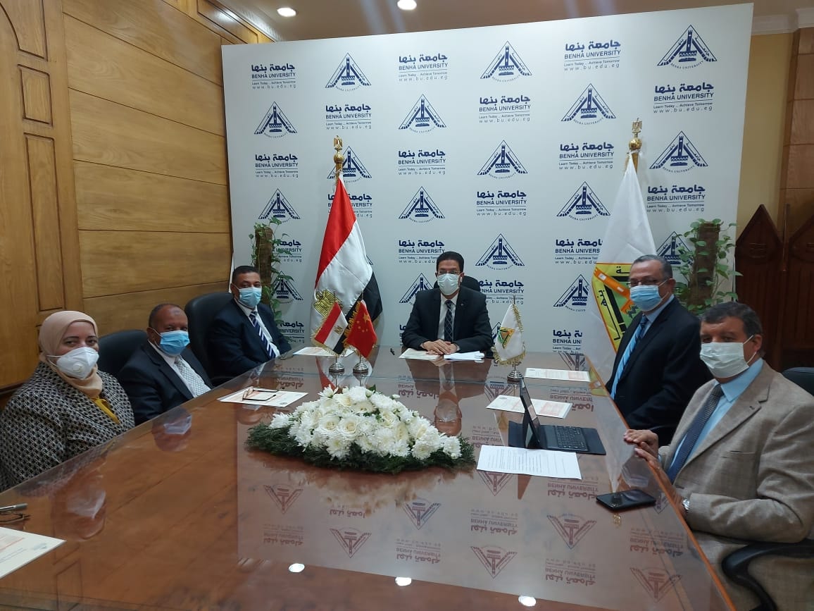 بحث الدكتور ناصر الجيزاوى القائم بأعمال رئيس جامعة بنها سبل التعاون "اون لاين" مع جامعة ووهان للتكنولوجيا بالصين لمنح درجات علمية مزدوجة بين الجانبين ، وذلك بمشاركة البروفيسير/ جانج شنجى رئيس جامعة ووهان الصينية والسيد/ وانج شينجانج المستشار التعليمي لسفارة الصين بالقاهرة ، وعمداء كليات الهندسة والاقتصاد وإدارة الأعمال والكمبيوتر بالجامعة الصينية.