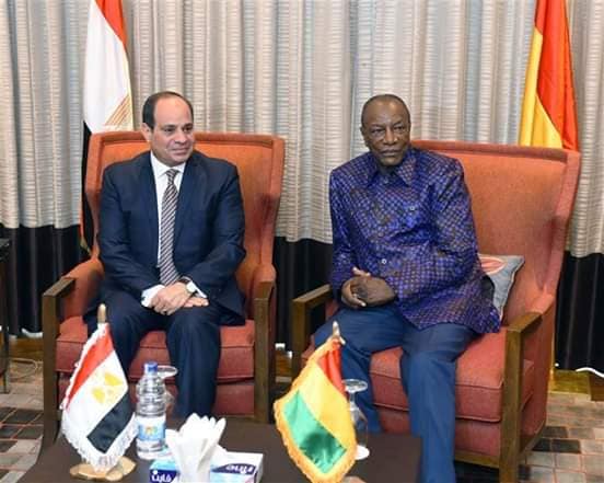 وصرح السفير بسام راضي، المتحدث الرسمي باسم رئاسة الجمهورية، بأن الرئيس الغيني رحب بزيارة الرئيس التاريخية، لكونها أول زيارة لرئيس مصري إلى غينيا منذ أكثر من خمسة عقود، منوهاً إلى عمق العلاقات التاريخية بين البلدين، وضرورة العمل على تطوير مختلف أطر التعاون المشترك، لا سيما من خلال متابعة النتائج المثمرة التي أسفرت عنها المباحثات المعمقة التي تمت خلال زيارته الثنائية إلى مصر في مايو 2017، خاصةً في المجالين الاقتصادي والتجاري.
