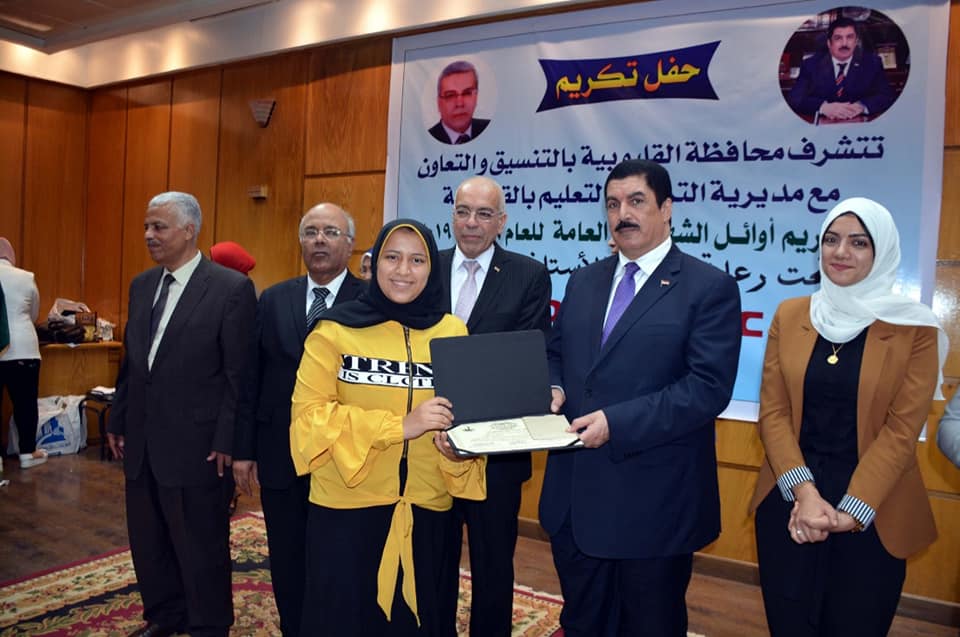 في ظل احتفالات محافظة القليوبية بعيدها القومي قام الأستاذ الدكتور / علاء عبد الحليم مرزوق محافظ القليوبية اليوم الإثنين الموافق 26/8/2019 بتكريم أوائل الشهادات العامة بديوان عام المحافظة بحضور الدكتورة / إيمان ريان نائب محافظ القليوبية والدكتور / عواد أحمد علي السكرتير العام للمحافظة واللواء / حمدي الحشاش السكرتير العام المساعد للمحافظة والأستاذ /طه عجلان وكيل وزارة التربية والتعليم بالقليوبية والنائب الدكتور / محمد عطية الفيومي رئيس مجلس أمناء التربية والتعليم بالقليوبية والنائب والإعلامي المعروف الأستاذ / أحمد بدوي والأستاذ / حمدي سلامة رئيس مجلس مدينة بنها والمهندسة / أمل فوزي رئيس مجلس مدينة قها