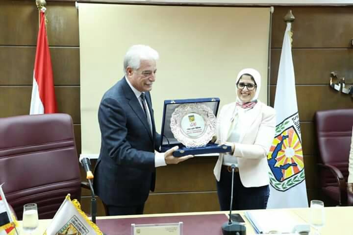 وفي نهاية الاجتماع أهدى محافظ جنوب سيناء درع المحافظة للدكتورة هالة زايد وزيرة الصحة و السكان، وذلك تقديرا لجهودها للنهوض بالمنظومة الصحية في محافظة جنوب سيناء .